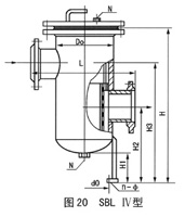 (3)籃式支承高低接管法蘭連接式過濾器(SBL IV型),見圖20,表18(DN350-500,PN≤5.0MPa)