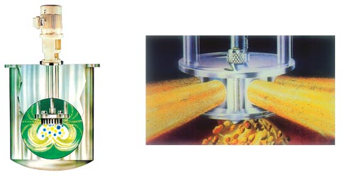 承受劇烈的機械及液壓力的剪切作用,將顆粒撕裂和粉碎,與此同時新的物料被吸進轉子中心,被推出的物料在容器壁面改變方向,從而完成了一個循環。