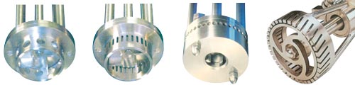 *圓孔定子頭:適用于一般的混合或大顆粒的粉碎,在這種頭上的圓形開孔提供了所有定子中最好的循環,對較高粘度的流體實現最完善的循環作用。