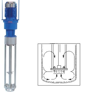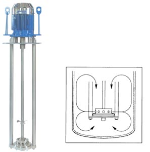 在電動機的驅動下,高速旋轉的轉子將物料從容器底部吸入轉子區,承受強烈的混合作用,物料被迫通過精密配合的定子與轉子間隙后,從定子孔中甩出。