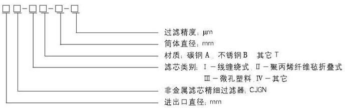 非金屬濾芯精細過濾器典型結構尺寸